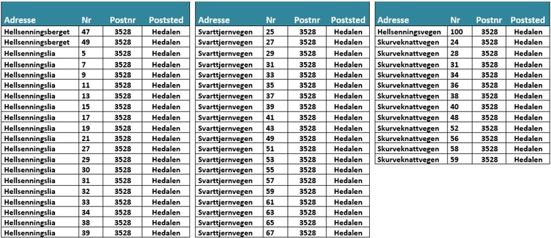 Se liste over adresser som inngår i prosjektet