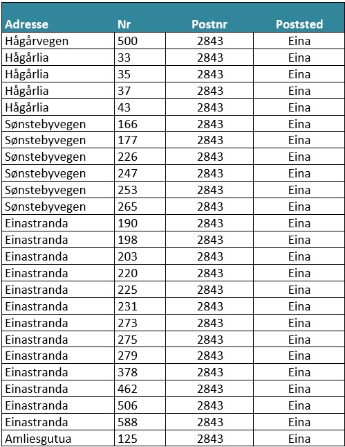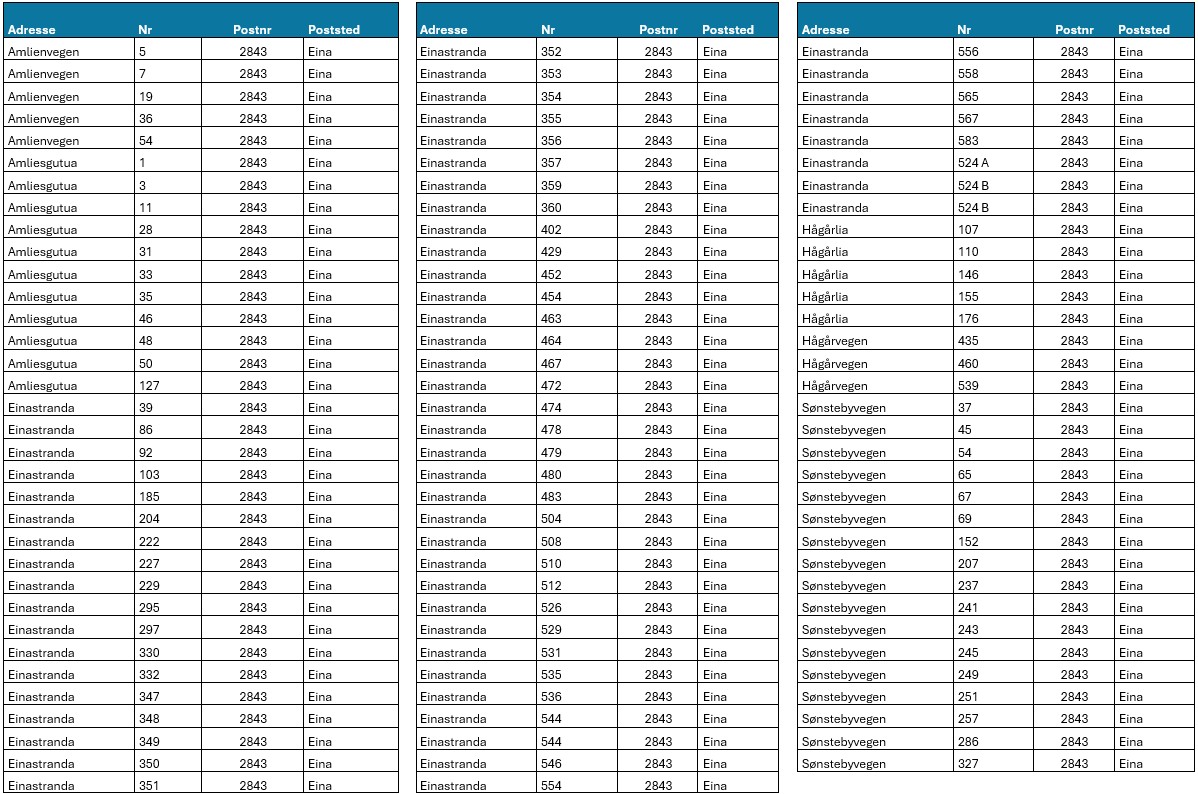 📁 Einafjorden tillegg (PID03409) Adresseliste